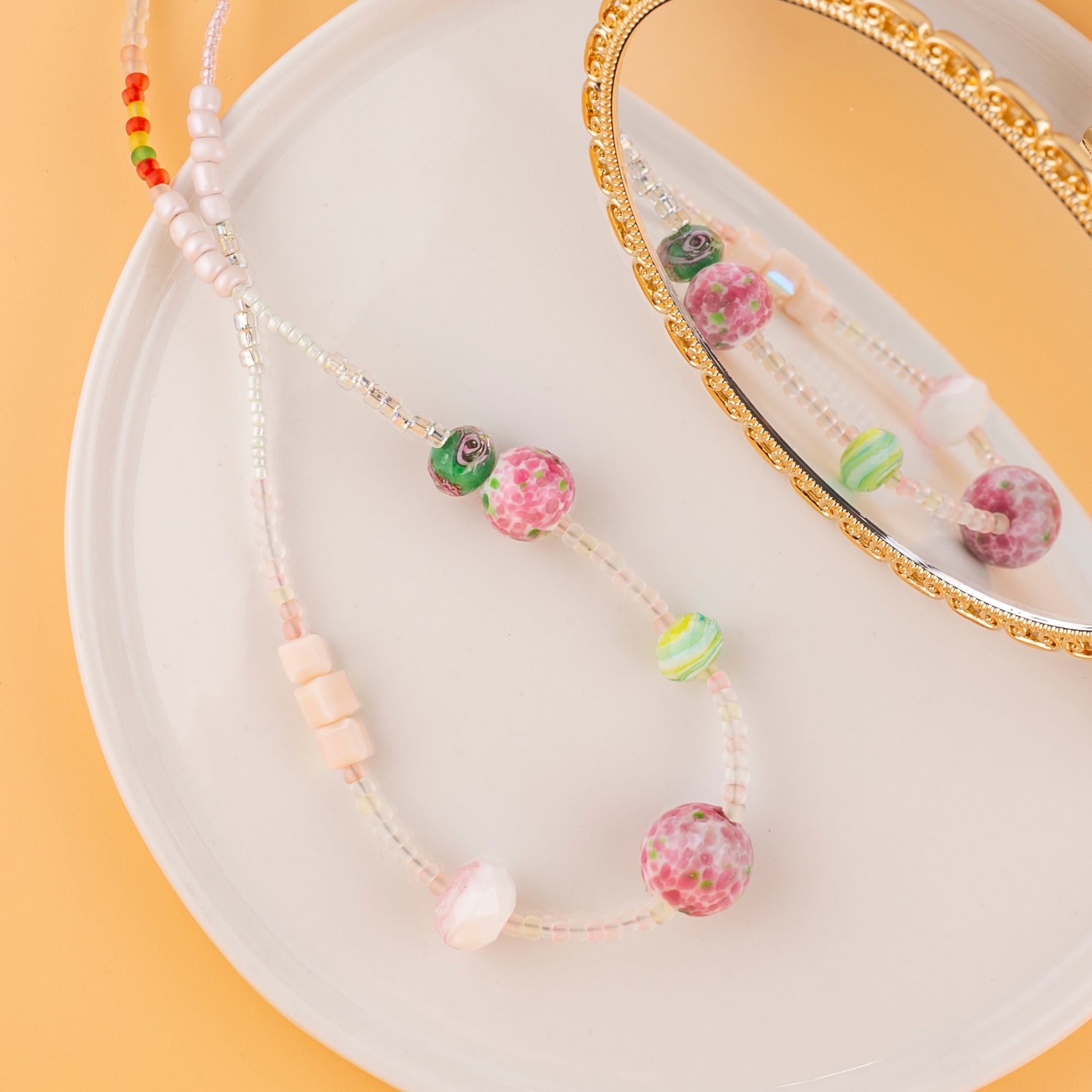 🎨 Features unique glass and ceramic beads