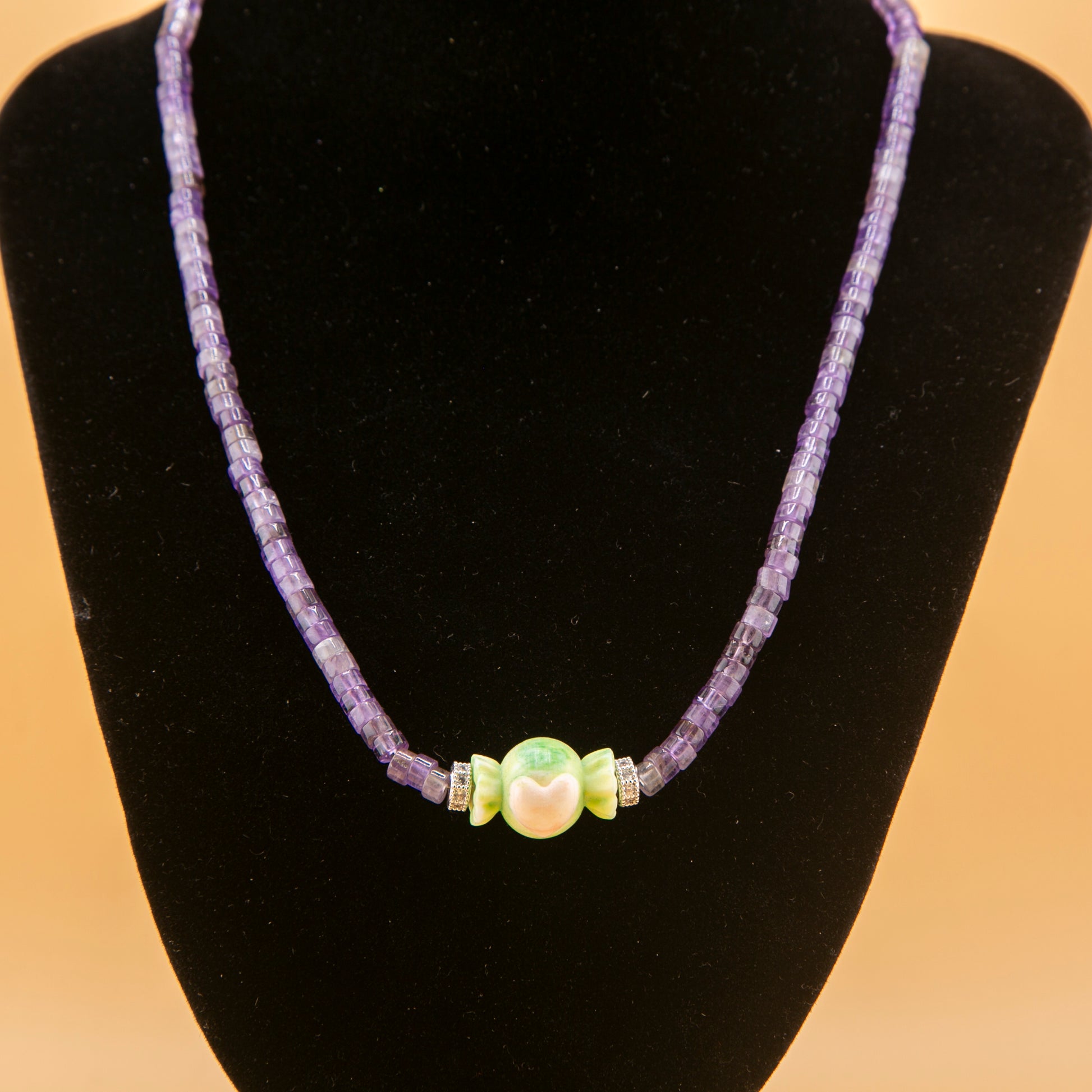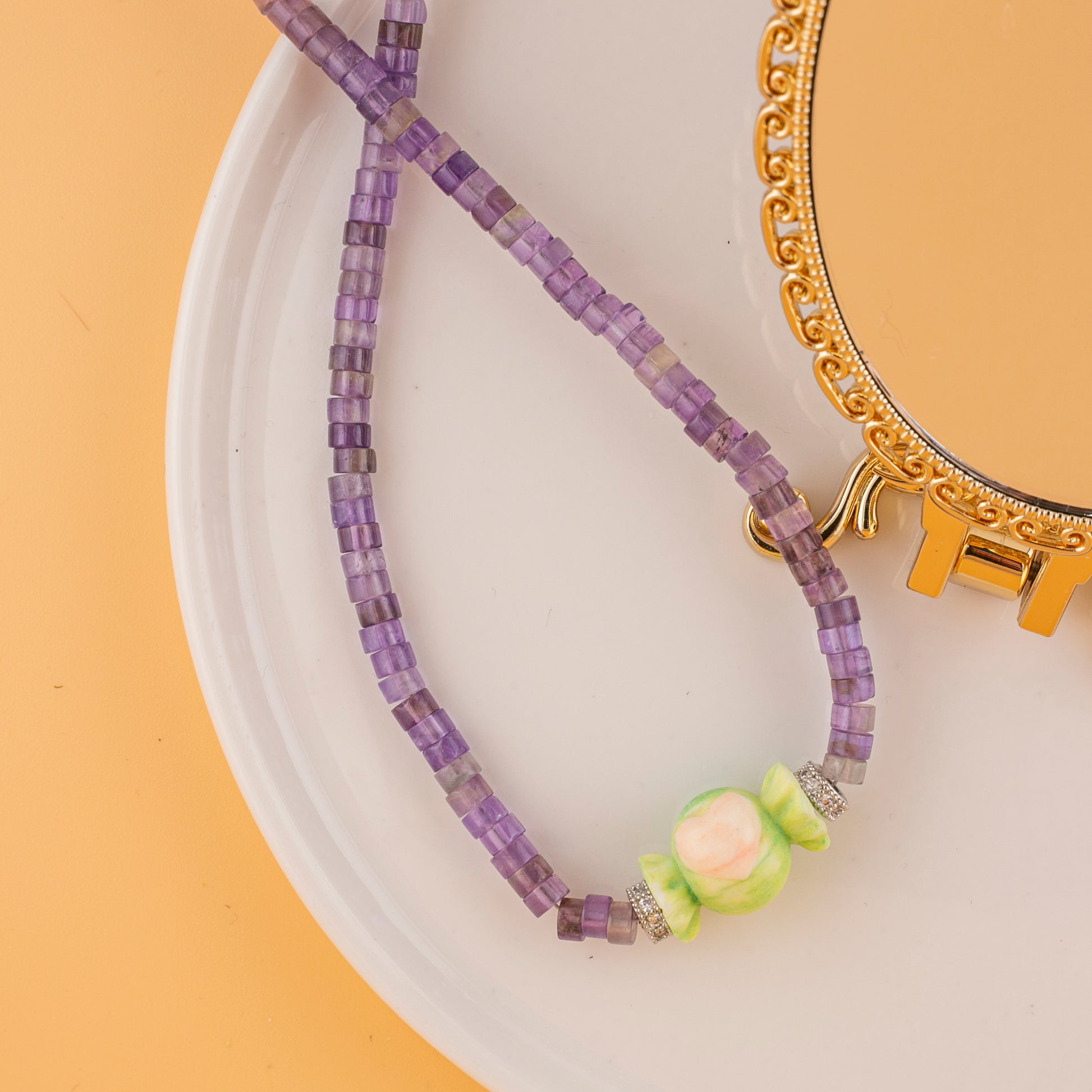 Sweet, simple, and full of charm β the Grape Pop Necklace brings candycore dreams to life. With glossy purple cube beads and a playful green candy charm at the center, this handmade piece adds just the right amount of quirk and color to your outfit. It's cute, unique, and guaranteed to make you smile.
